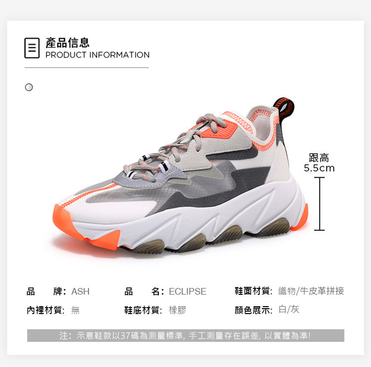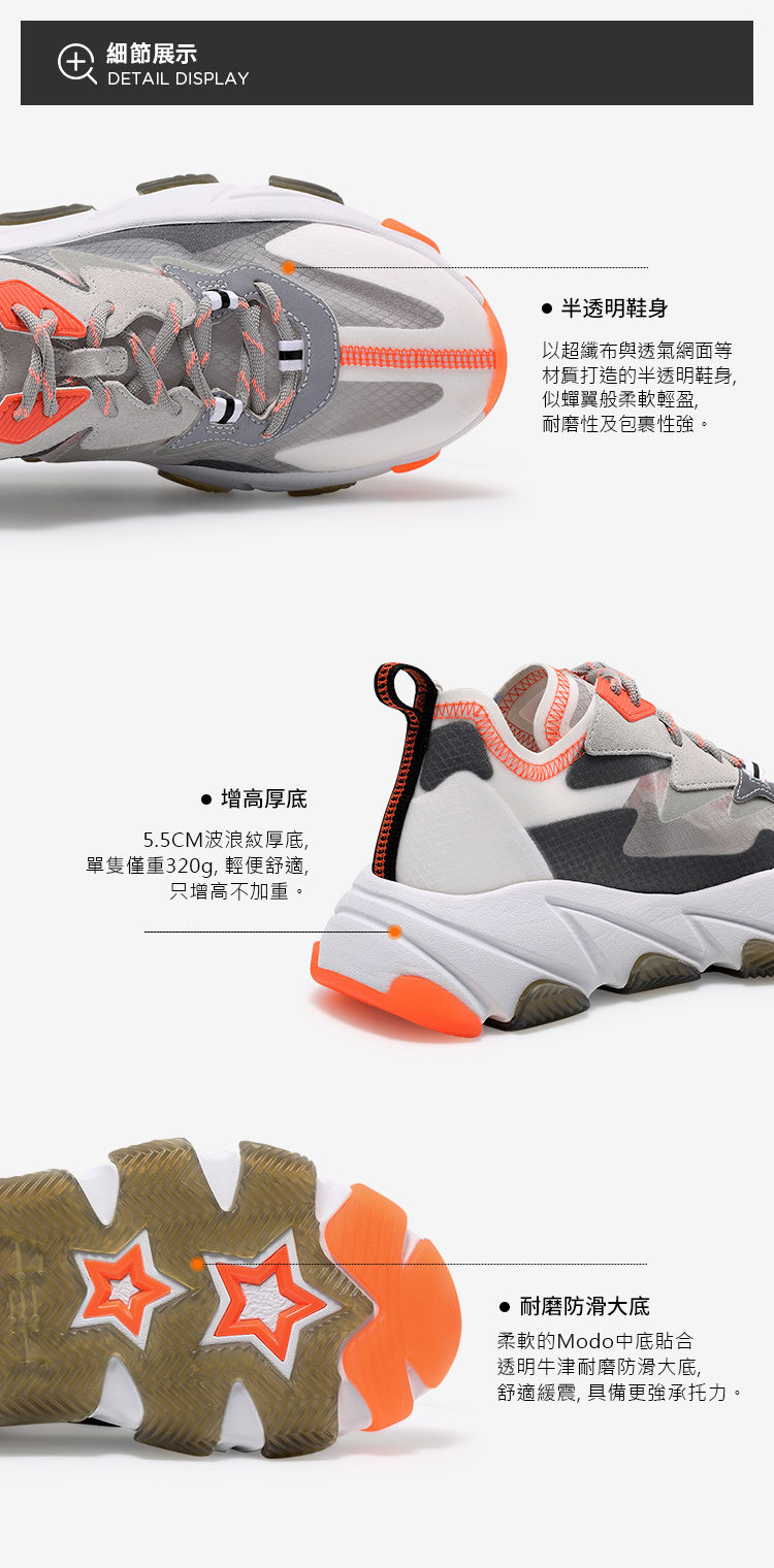 春季新款女鞋透明蟬翼撞色厚底增高運動鞋