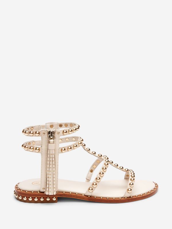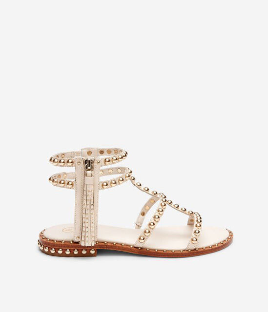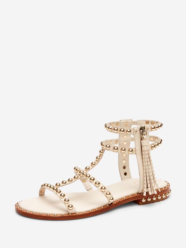 流蘇金屬真皮平底羅馬涼鞋
