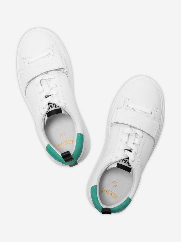 ・時尚厚底小白鞋 ・進口牛皮 ・綁帶與魔術貼雙設計 ・防滑鞋底