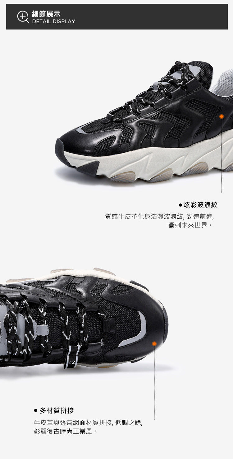 •最新男款秋冬時尚潮流增高老爹鞋 •炫彩波浪紋 •高質感牛皮 •透氣網布設計 •輕量增高厚底