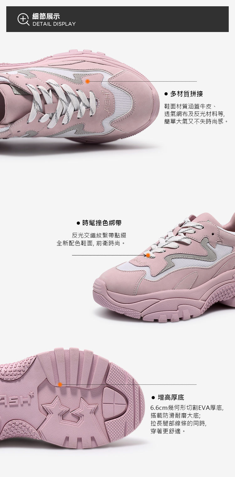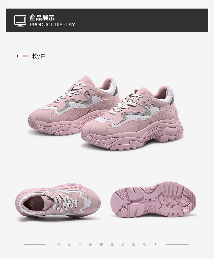 ・夏日甜蜜俏皮糖果粉 ・年度銷售冠軍老爹鞋 ・6.6cm內增高拉長比例 ・全真皮打造細膩親膚