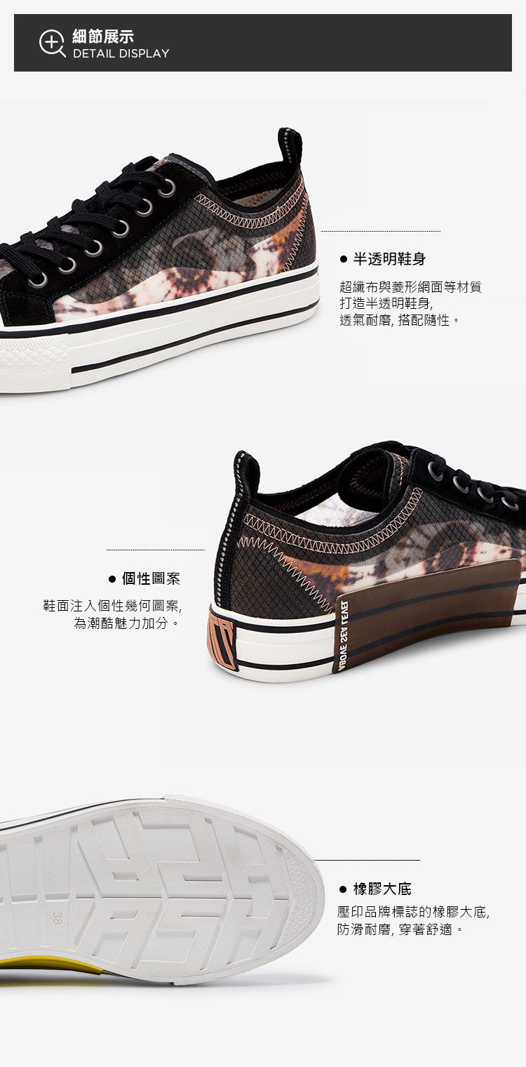・時尚超纖透明蟬翼鞋身 ・街頭潮流經典必備帆布鞋 ・採用今季微厚底設計打造 ・經典百搭色系x休閒感綁帶