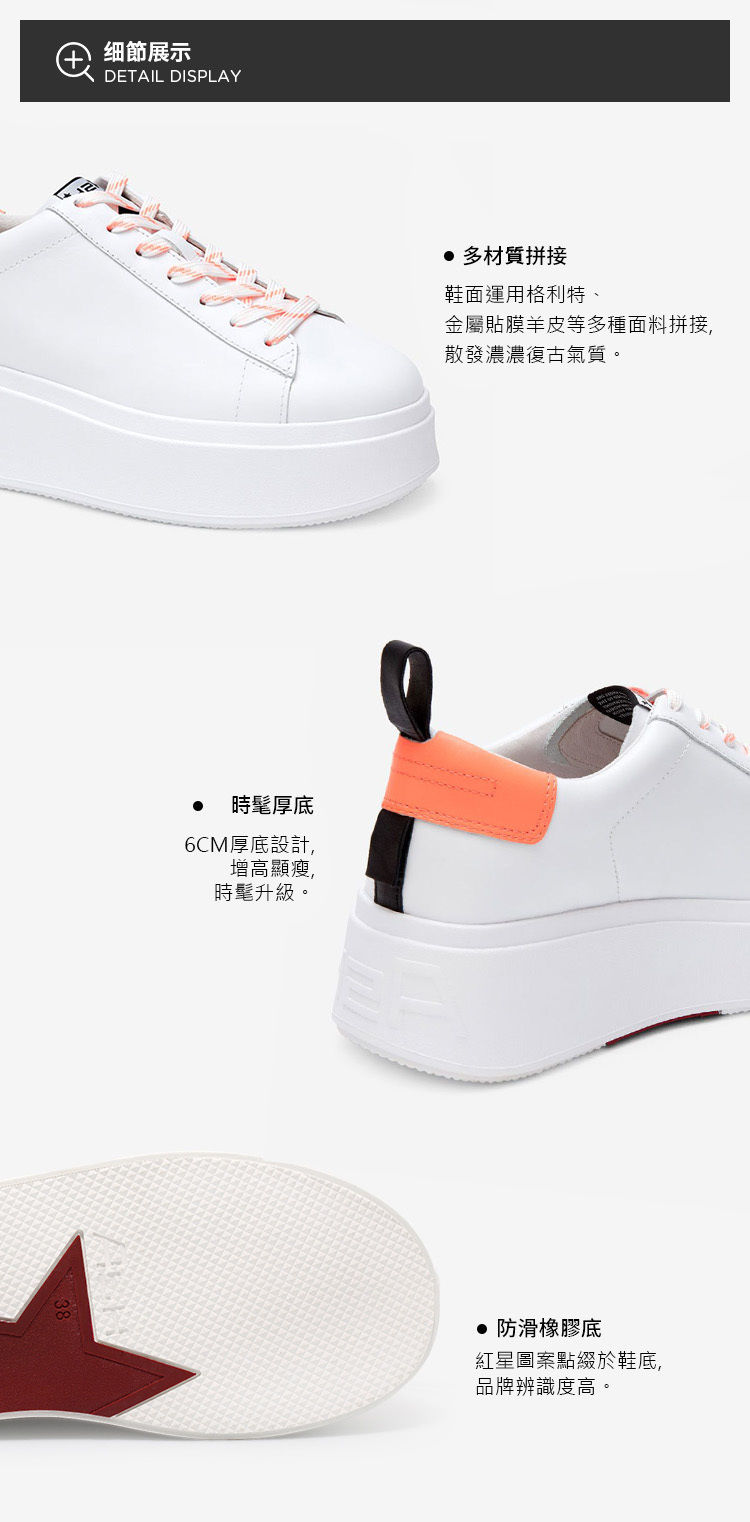・6公分厚底顯高顯瘦 ・鞋底星星圖案點綴 ・輕量材質隨穿隨走 ・百搭必備小白鞋