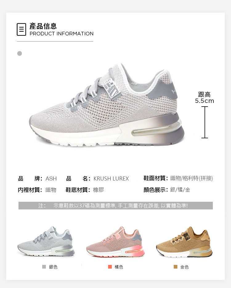 ・5.5cm輕量厚底拉長比例 ・針織鞋面彈性柔軟又透氣 ・加厚網布內裡提升舒適感 ・氣墊鞋底輕鬆行走無負擔