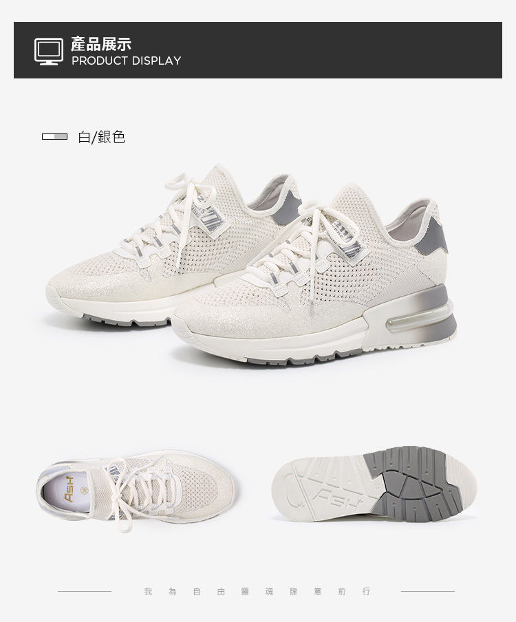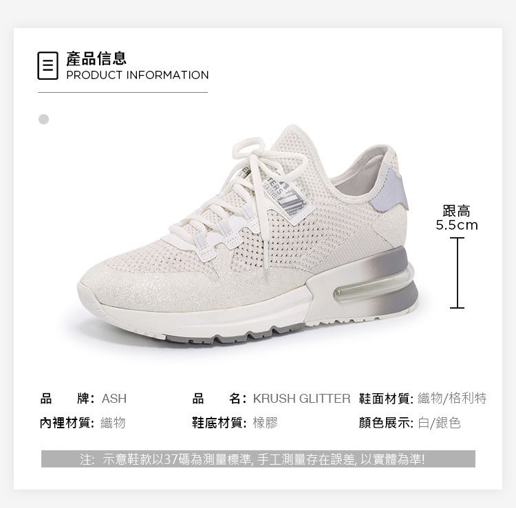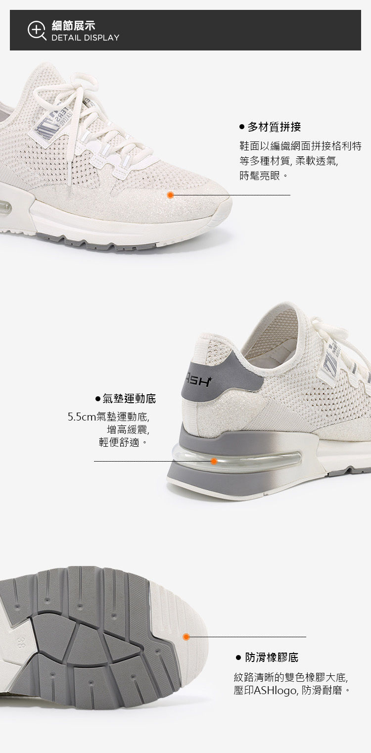 ・5.5cm輕量厚底拉長比例 ・針織鞋面彈性柔軟又透氣 ・加厚網布內裡提升舒適感 ・氣墊鞋底輕鬆行走無負擔