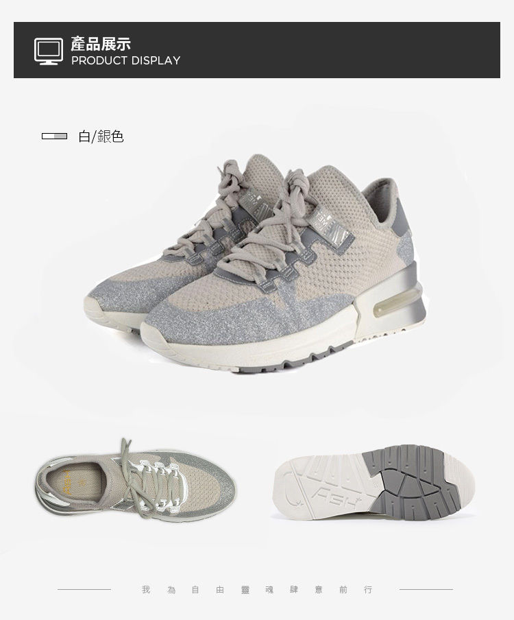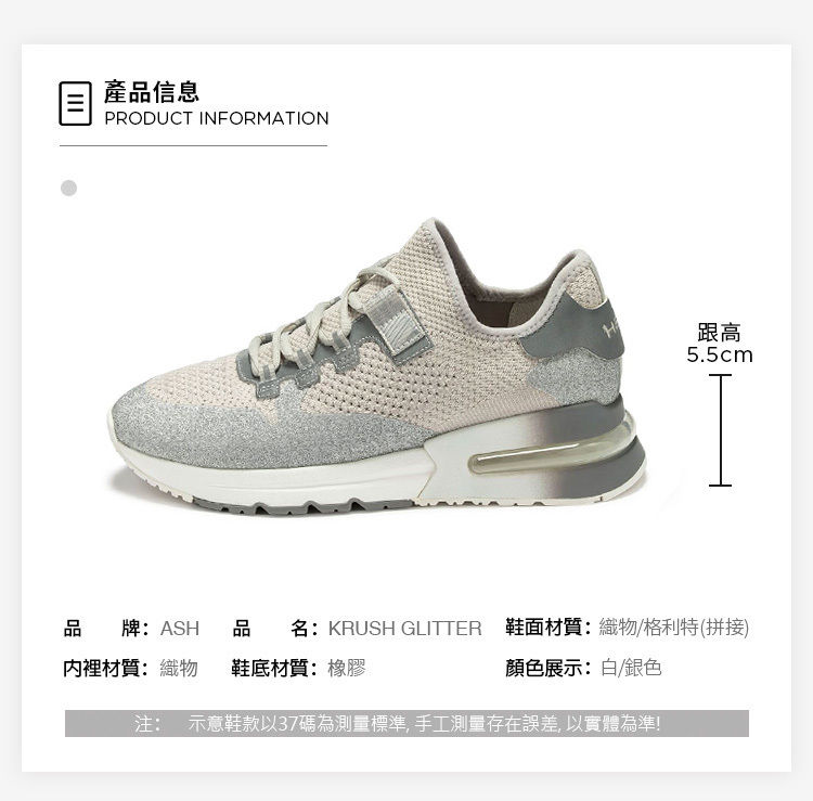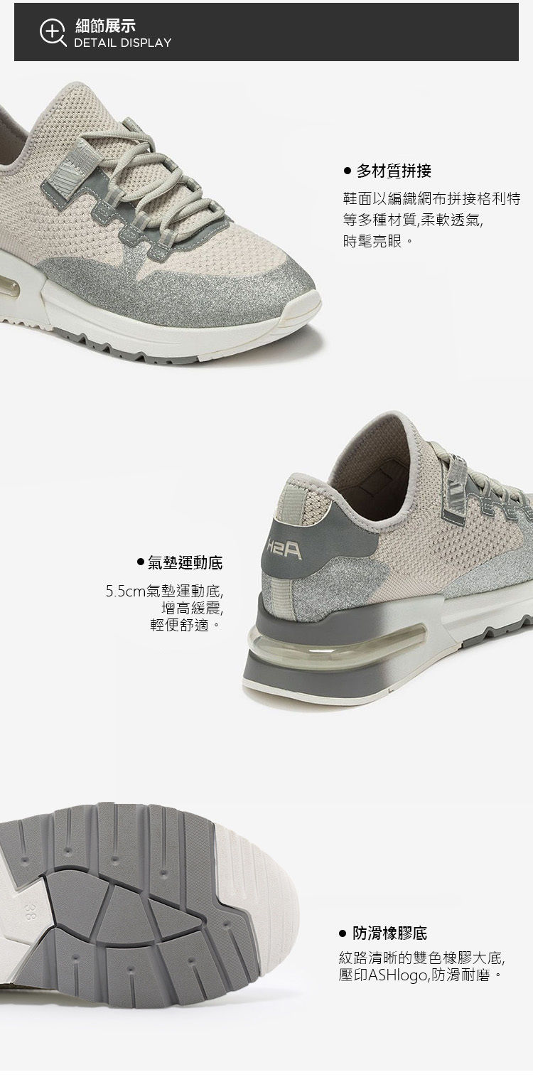 ・5.5cm輕量厚底拉長比例 ・針織鞋面彈性柔軟又透氣 ・加厚網布內裡提升舒適感 ・氣墊鞋底輕鬆行走無負擔