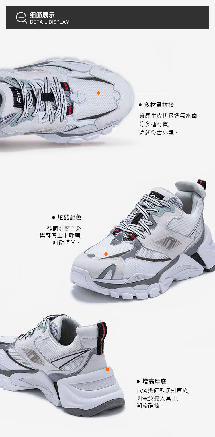 ・經典運動老爹鞋款 ・超纖透氣材質 ・耐磨防滑大底 ・輕量增高厚底