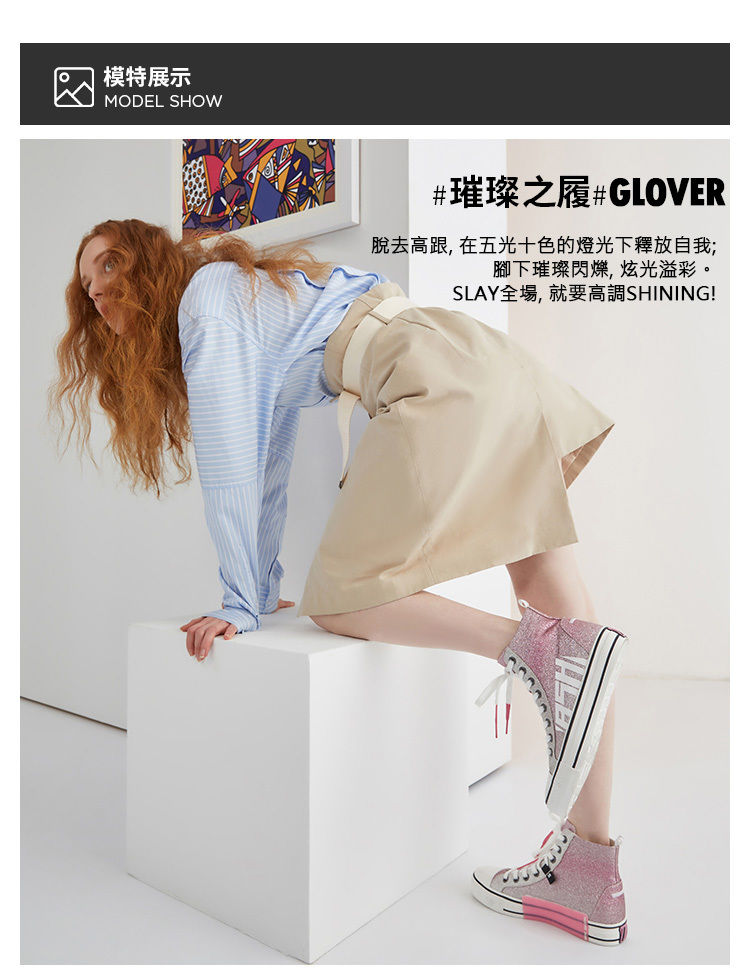 ・閃亮格利特材質 ・外側創意反光LOGO ・超輕量增高5.5CM厚底 ・防滑耐磨鞋底
