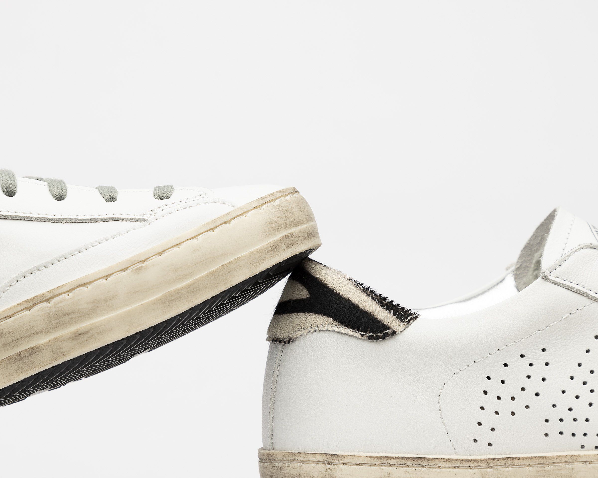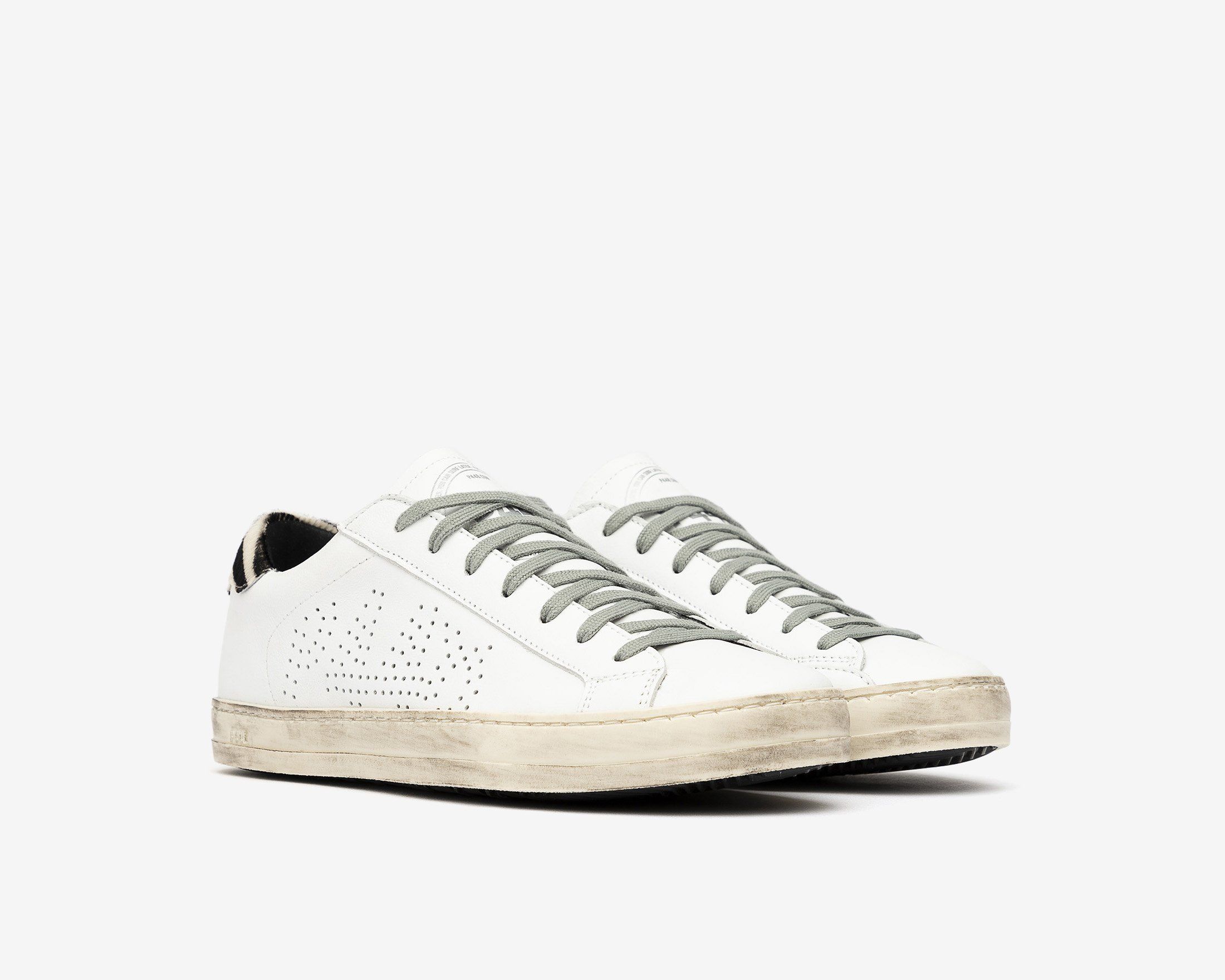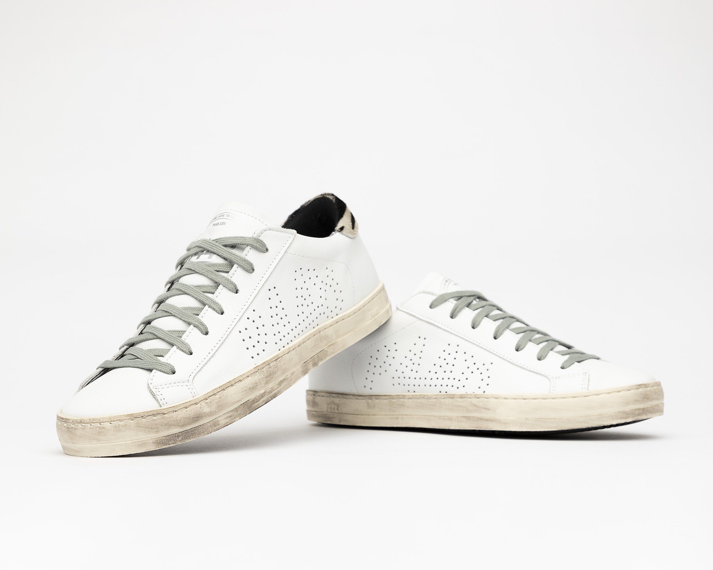 •100%義大利製造 •白色牛皮革,標誌性穿孔P448設計 •黑白斑馬紋 •P448訂製記憶鞋墊 •跟高2.3公分 •正常版型